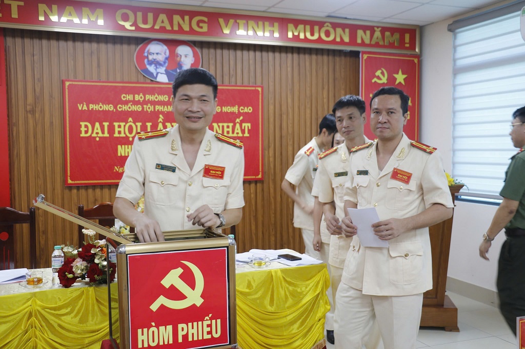 Phát biểu chỉ đạo tại Đại hội, đồng chí Đại tá Lê Văn Thái, Phó Giám đốc Công an tỉnh ghi nhận và đánh giá cao những thành tích mà Chi bộ Phòng đã đạt được trong nhiệm kỳ qua. Đồng thời, đồng chí nhấn mạnh, bước sang nhiệm kỳ mới 2025 - 2030 là thời điểm then chốt để xây dựng lực lượng An ninh mạng và phòng, chống tội phạm công nghệ cao tiến thẳng lên hiện đại theo tinh thần Nghị quyết số 12 của Bộ Chính trị, vì vậy cần thống nhất, quyết tâm nâng cao năng lực lãnh đạo, sức chiến đấu của tổ chức cơ sở Đảng, phát huy tính tiền phong, gương mẫu của từng đảng viên đi đôi với đẩy mạnh xây dựng đội ngũ cán bộ chiến sĩ vững vàng bản lĩnh chính trị, tinh thông pháp luật nghiệp vụ. Cùng với đó là nâng cao chất lượng các mặt công tác chuyên môn, nghiệp vụ, huy động sức mạnh tập thể, đoàn kết, thống nhất, phấn đấu hoàn thành xuất sắc các chỉ tiêu, nhiệm vụ chính trị của đơn vị, góp phần thiết thực vào sự nghiệp bảo vệ và phát triển kinh tế - xã hội của tỉnh Nghệ An, đưa đất nước bước vào kỷ nguyên mới - kỷ nguyên vươn mình của dân tộc Việt Nam.