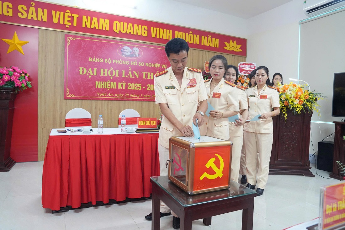 (Congan.nghean.gov.vn)-Với khẩu hiệu hành động “Xây dựng Đảng bộ Phòng hồ sơ nghiệp vụ thật sự trong sạch, vững mạnh, chính quy, tinh nhuệ, hiện đại, đáp ứng yêu cầu nhiệm vụ trong tình hình mới”, ngày 29/5/2025, Đại hội Đảng bộ Phòng Hồ sơ nghiệp vụ Công an Nghệ An đã tiến hành tổng kết nhiệm kì 2020- 2025, làm rõ những ưu điểm, khuyết điểm, nguyên nhân và đề ra phương hướng, mục tiêu chủ yếu, giải pháp cụ thể để lãnh đạo thực hiện thắng lợi nhiệm vụ chính trị của Đảng bộ trong nhiệm kỳ 2025- 2030.