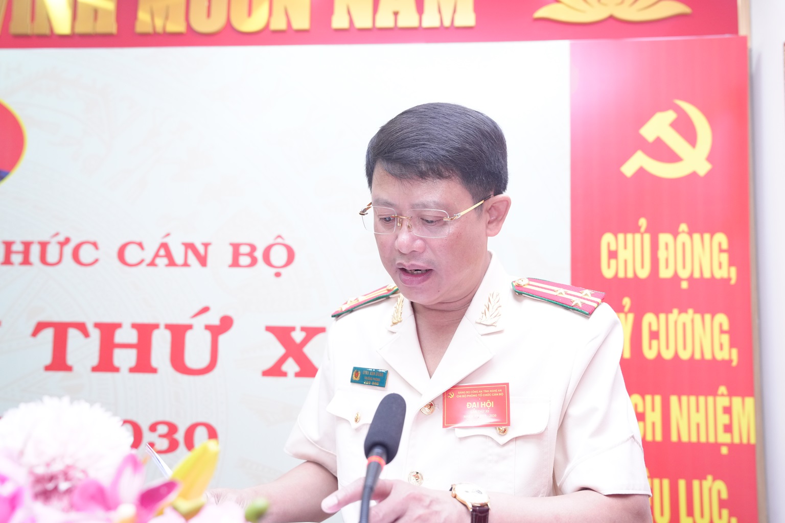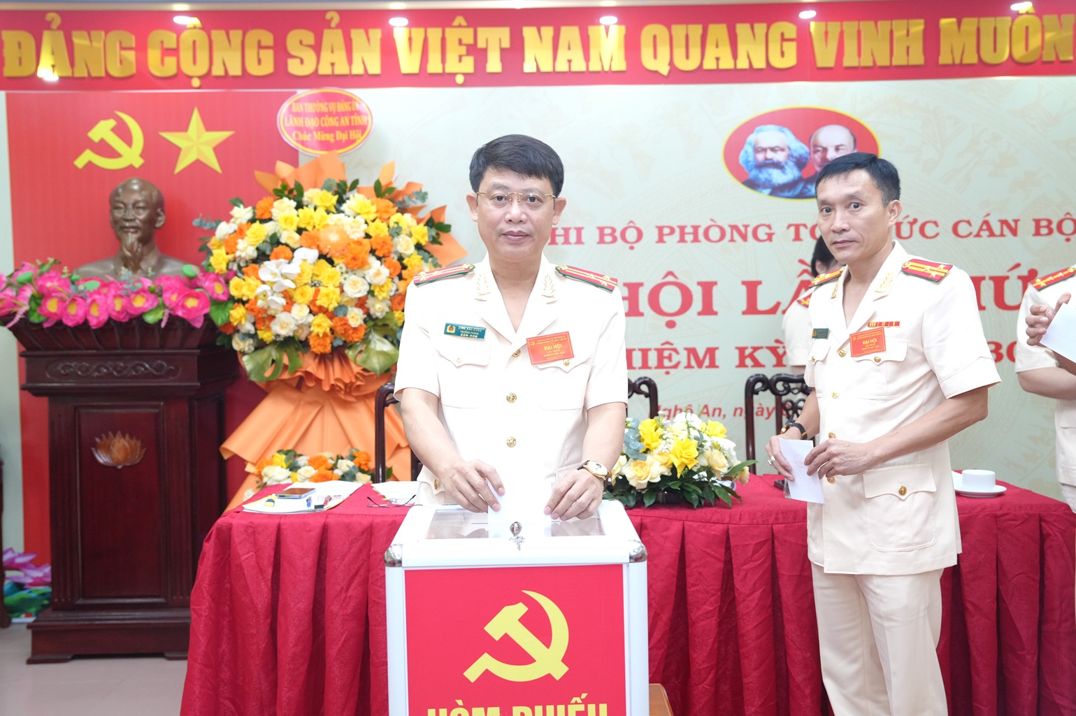 Phát biểu chỉ đạo tại Đại hội, đồng chí Thiếu tướng Bùi Quang Thanh, Ủy viên Ban Thường vụ Tỉnh ủy, Bí thư Đảng ủy, Giám đốc Công an tỉnh đã biểu dương những kết quả mà Chi bộ đạt được trong nhiệm kỳ qua, đồng thời lưu ý một số nội dung mà Chi bộ cần tập trung lãnh đạo, chỉ đạo trong nhiệm kỳ tới. Đồng chí Bí thư Đảng ủy Công an tỉnh nhấn mạnh: Công tác tổ chức cán bộ là “then chốt của then chốt” trong việc xây dựng lực lượng Công an Nghệ An thực sự trong sạch, vững mạnh. Chính vì thế cán bộ làm công tác này cần nắm vững uan điểm, đường lối của Đảng, chính sách pháp luật của Nhà nước và chế độ công tác của ngành trên lĩnh vực tổ chức cán bộ, để chủ động tham mưu có hiệu quả cho Đảng ủy Công an tỉnh về sắp xếp, bố trí và tổ chức cán bộ trong từng giai đoạn, thời điểm sao cho phù hợp với nhiệm vụ chính trị và các mặt công tác Công an một cách khách quan, công khai, minh bạch; trước mắt, tập trung hoàn thành nhiệm vụ sáp nhập công an cấp xã, bảo đảm khách quan, công tâm, đúng năng lực, đúng sở trường, đúng vị trí công tác, đảm bảo toàn diện các mặt công tác; Ban chấp hành Chi bộ, Lãnh đạo Phòng Tổ chức cán bộ phải luôn gương mẫu, đi đầu trong việc chấp hành kỷ luật, kỷ cương, điều lệnh Công an nhân dân, hết lòng hết sức vì nhiệm vụ chung; mỗi cán bộ, đảng viên trong Chi bộ, đơn vị phải thực sự công tâm, khách quan trên tinh thần hết lòng, hết sức phục vụ, giúp đỡ đồng chí, đồng đội; tăng cường bồi dưỡng, nâng cao năng lực, trình độ, xây dựng đội ngũ cán bộ đơn vị thực sự “tinh”; triển khai đầy đủ, kịp thời, đúng quy định các chế độ, chính sách đối với mỗi cán bộ, chiến sỹ và thân nhân; nghiên cứu, tăng cường ứng dụng công nghệ thông tin, cải cách hành chính trong công tác tổ chức cán bộ, công tác đào tạo, bồi dưỡng, việc thực hiện chế độ, chính sách cho cán bộ, chiến sỹ.
