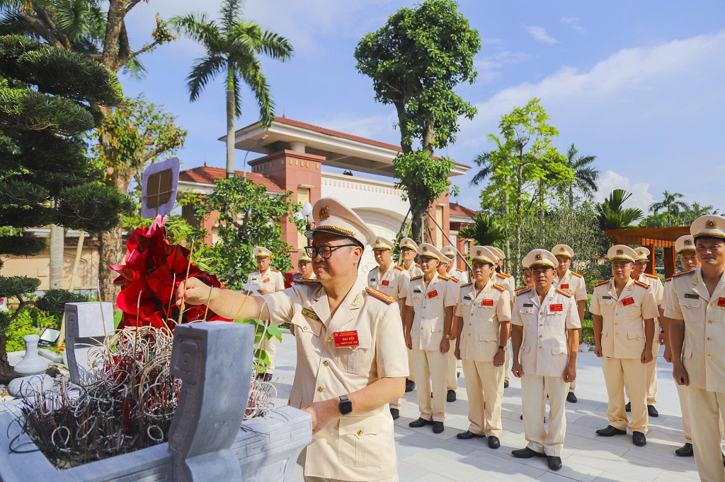 | Trước khi diễn ra Đại hội, Lãnh đạo và cán bộ, đảng viên Đảng bộ Phòng Cảnh sát PCCC và CNCH đã tổ chức dâng hoa, dâng hương tưởng niệm Chủ tịch Hồ Chí Minh, đồng chí Đại tướng Võ Nguyên Giáp, đồng chí Bộ trưởng Trần Quốc Hoàn và các Anh hùng liệt sĩ tại Nhà tưởng niệm trong khuôn viên Công an tỉnh Nghệ An |