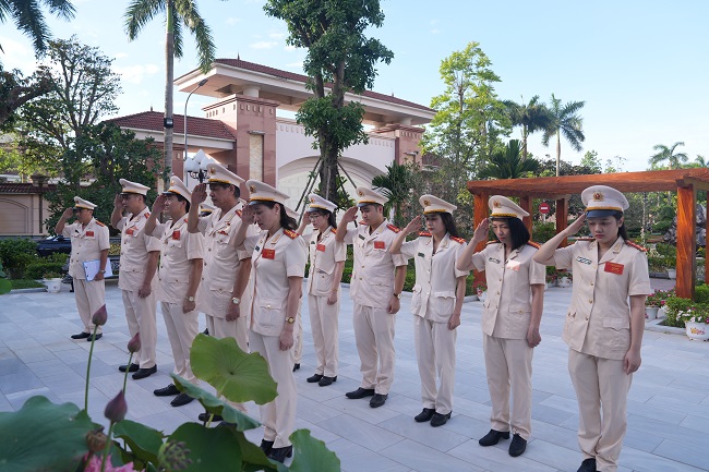 Trước khi vào Đại hội, Lãnh đạo và cán bộ Cơ quan UBKT Đảng ủy Công an tỉnh đã tổ chức dâng hoa, dâng hương tưởng niệm Chủ tịch Hồ Chí Minh tại Nhà tưởng niệm trong khuôn viên Công an tỉnh Nghệ An