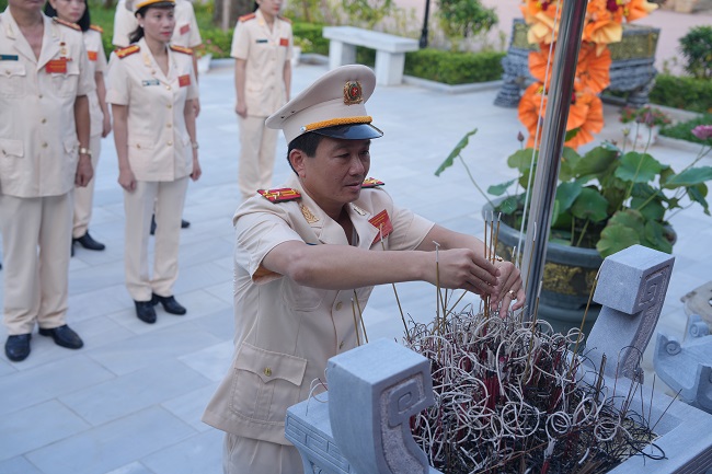 | Các đại biểu dâng hương tưởng niệm Chủ tịch Hồ Chí Minh, Đồng chí Đại tướng Võ Nguyên Giáp, Đồng chí Bộ trưởng Trần Quốc Hoàn và các Anh hùng liệt sĩ |