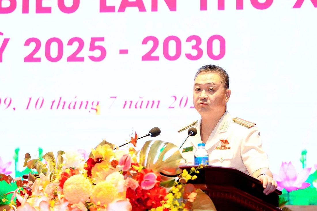 | Đồng chí Đại tá Đinh Việt Dũng, Bí thư Đảng ủy khóa XIV, Giám đốc Công an tỉnh phát biểu chỉ đạo tại phiên trù bị |