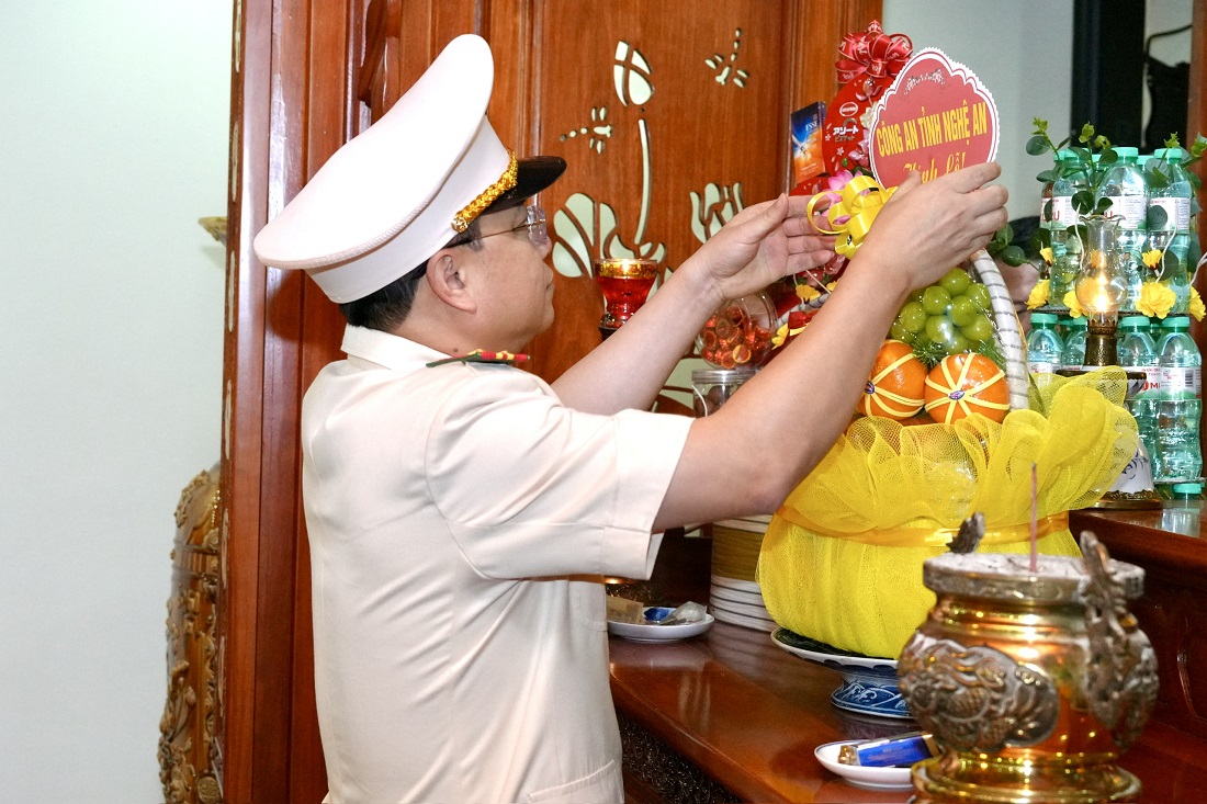 Thay mặt Ban Thường vụ Đảng ủy, Lãnh đạo Công an tỉnh báo cáo với Bác những thành tích, kết quả của Công an tỉnh nhà trong 80 năm xây dựng, chiến đấu và trưởng thành, đồng chí Đại tá Trần Hồng Quang, Phó Bí thư Đảng ủy, Phó Giám đốc Công an tỉnh nhấn mạnh, ra đời và trực tiếp kế thừa tổ chức tiền thân là các đội Tự vệ đỏ trong cao trào cách mạng Xô Viết Nghệ Tĩnh 1930 - 1931, trải qua các giai đoạn lịch sử, cùng với lực lượng Công an nhân dân, Công an Nghệ An đã không ngừng lớn mạnh về mọi mặt, đóng góp to lớn trong hai cuộc kháng chiến chống thực dân Pháp và đế quốc Mỹ, cũng như trong sự nghiệp công nghiệp hóa, hiện đại hóa, xây dựng đất nước.