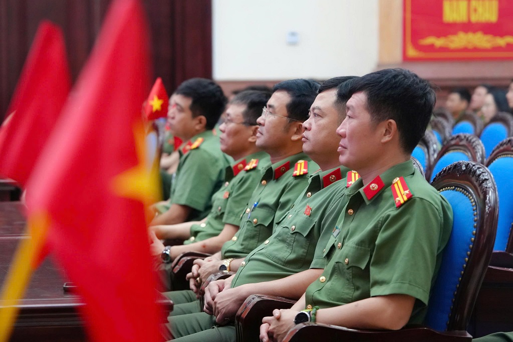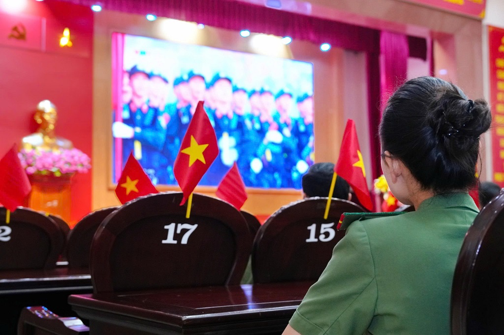 Ngay từ sáng sớm, đông đảo cán bộ, chiến sỹ đã tập trung tại hội trường trung tâm Công an tỉnh và Công an các đơn vị, địa phương, tạo nên một không gian cộng đồng giàu cảm xúc và đầy tự hào dân tộc. Nhiều cán bộ, chiến sĩ tay cầm những lá cờ Tổ quốc nhỏ, ánh mắt rạng ngời, gương mặt rưng rưng xúc động, ai nấy đều tràn đầy niềm tự hào dân tộc. Khi Lễ diễu binh, diễu hành kỷ niệm 80 năm Cách mạng Tháng Tám thành công và Quốc khánh nước Cộng hòa Xã hội chủ nghĩa Việt Nam được truyền hình trực tiếp từ Quảng trường Ba Đình, không khí tại hội trường trở nên trang nghiêm, thiêng liêng, hòa chung nhịp đập con tim hướng về Thủ đô Hà Nội.