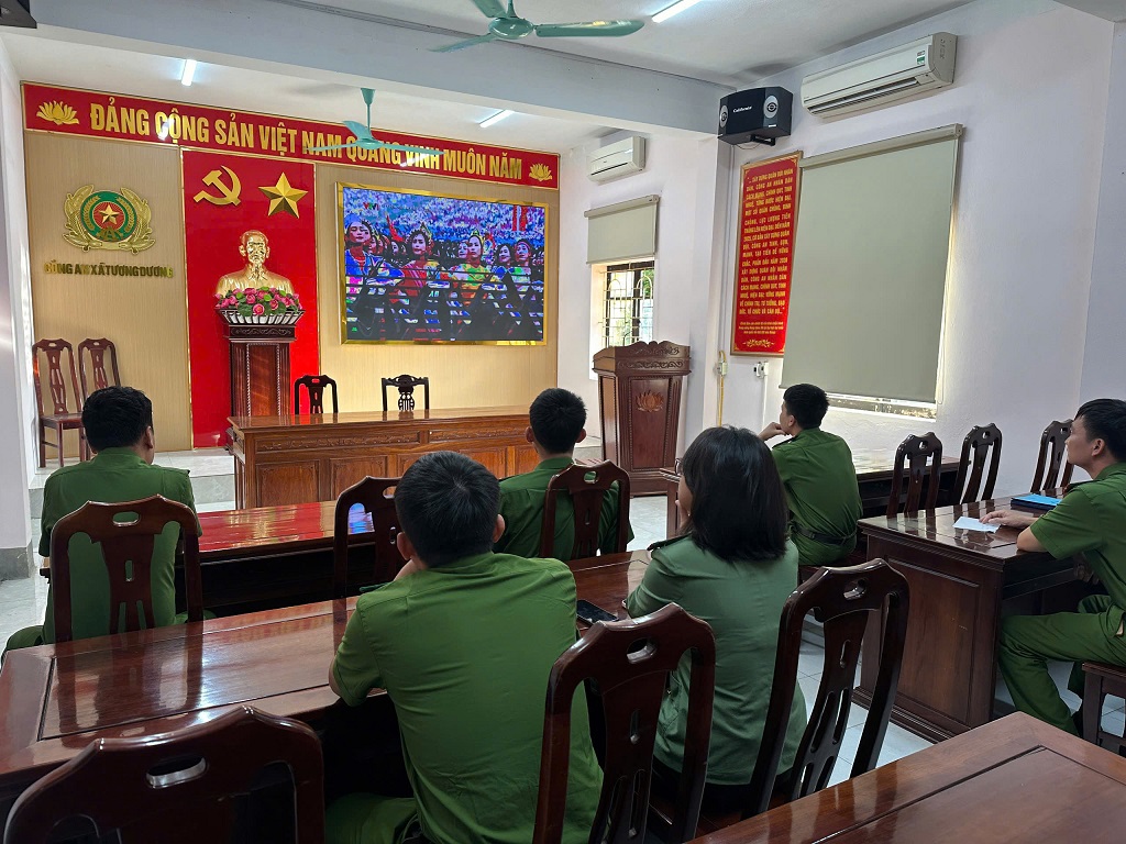 | Không chỉ tại trụ sở Công an tỉnh, cán bộ, chiến sĩ Công an tại các xã, phường theo dõi Lễ kỷ niệm với niềm xúc động, tự hào |