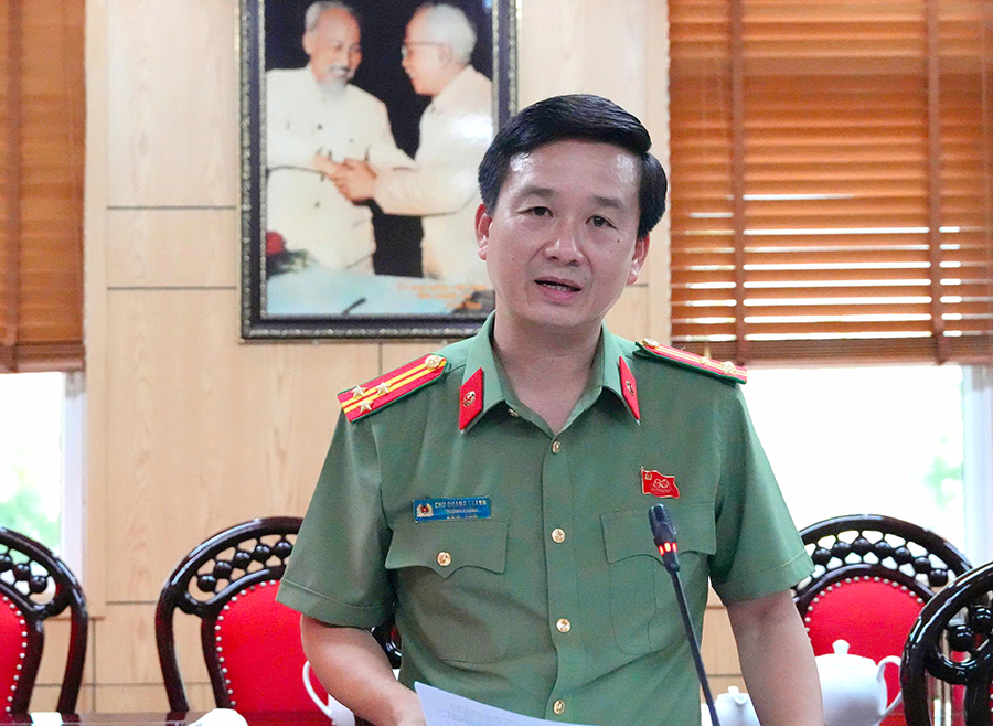 | Đồng chí Đại tá Trần Hồng Quang, Phó Giám đốc Công an tỉnh phát biểu tại Hội nghị |