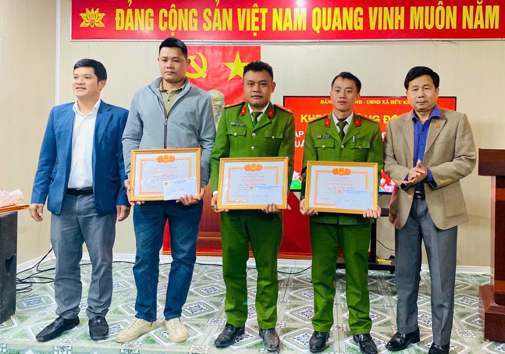 | Đại diện Lãnh đạo xã Hữu Kiệm trao Giấy khen cho tập thể, cá nhân Công an xã có thành tích xuất sắc trong phòng chống tội phạm |