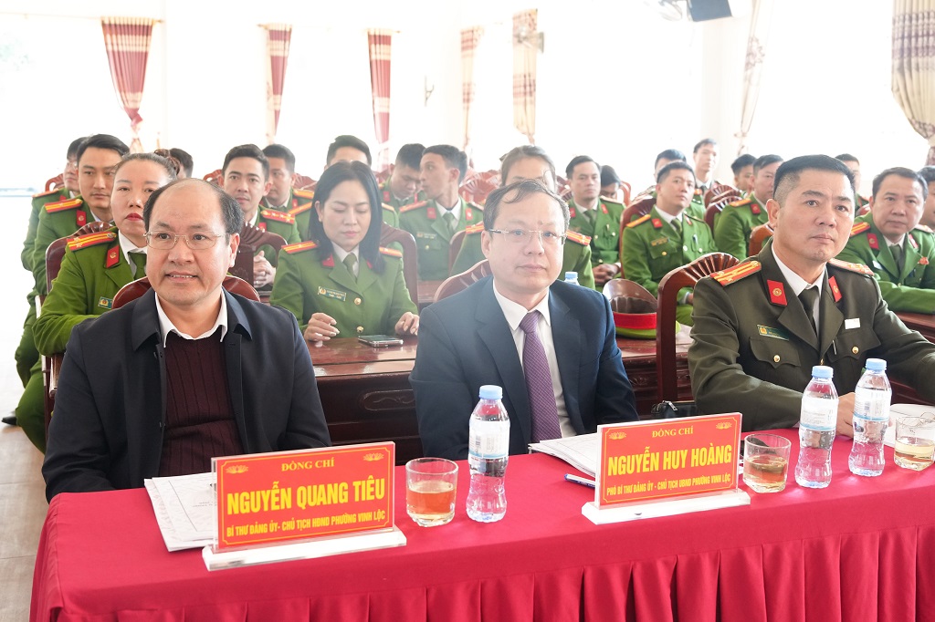 Tại Hội nghị, đơn vị phát động phong trào thi đua “Vì an ninh Tổ quốc” năm 2026 với khẩu hiệu hành động: “Công an phường Vinh Lộc - Theo lời Bác dạy - Đổi mới tư duy, nâng cao tri thức - Chính quy, hiện đại - Vì Đảng, vì dân”.