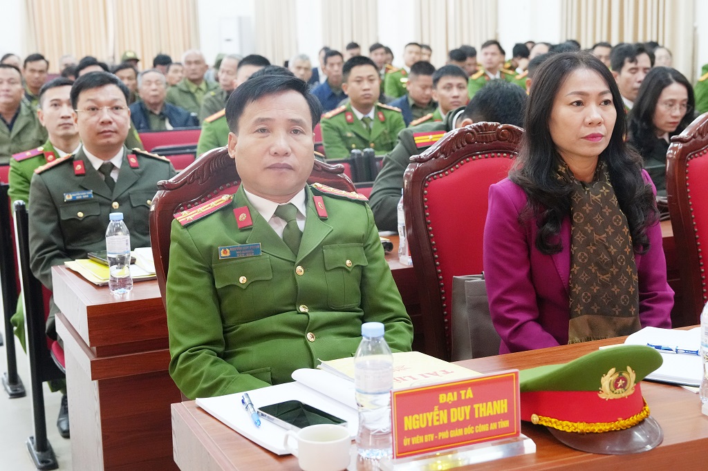 Phát biểu chỉ đạo tại Hội nghị, đồng chí Đại tá Nguyễn Duy Thanh, Ủy viên Ban Thường vụ Đảng ủy, Phó Giám đốc Công an tỉnh và đồng chí Nguyễn Thế Thân, Phó Bí thư Đảng ủy, Chủ tịch UBND phường ghi nhận, biểu dương thành tích xuất sắc mà Công an phường Vinh Phú đạt được trong năm qua.