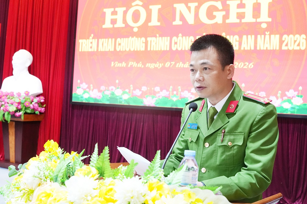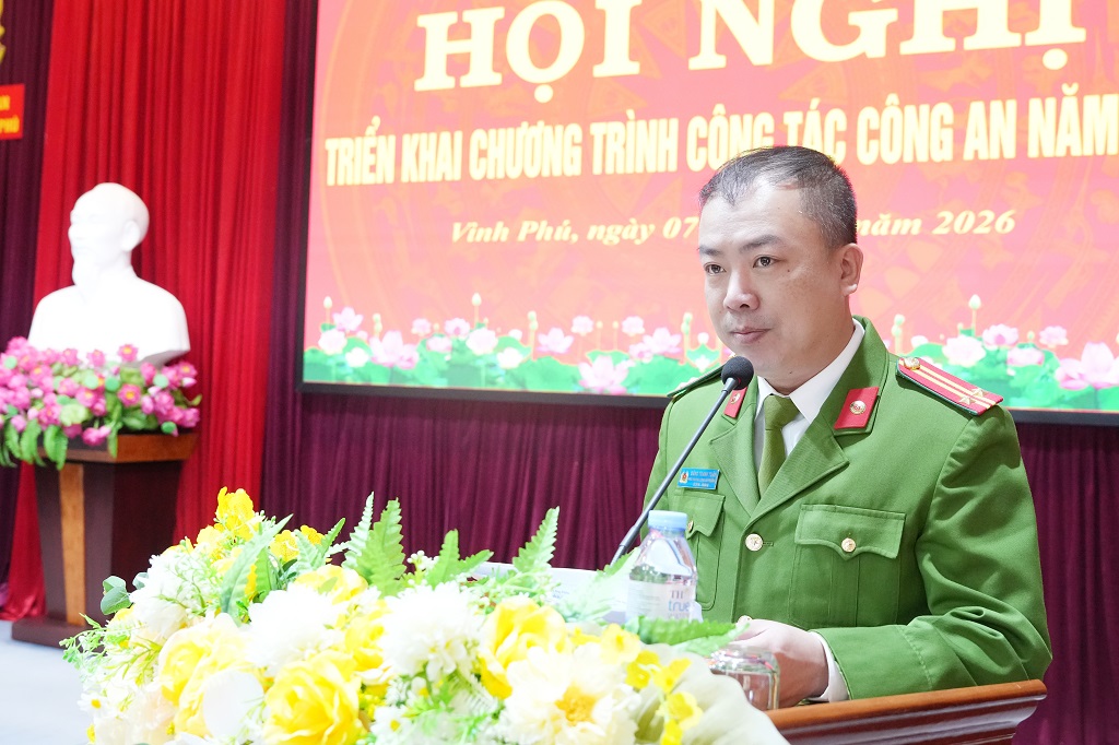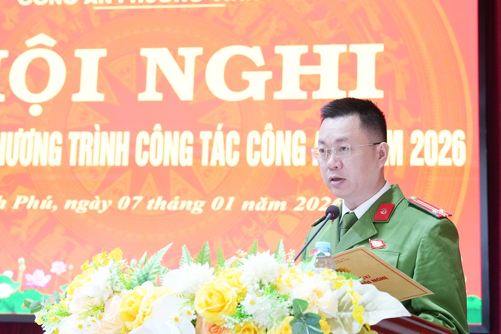 (Congan.nghean.gov.vn)-Đó là chỉ đạo của đồng chí Đại tá Nguyễn Duy Thanh, Ủy viên Ban Thường vụ Đảng ủy, Phó Giám đốc Công an tỉnh tại Hội nghị triển khai chương trình công tác công an năm 2026 của Công an phường Vinh Phú vào sáng 07/01/2026.