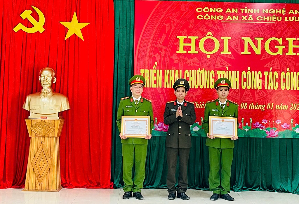 Phát biểu chỉ đạo tại Hội nghị, đồng chí Thượng tá Trần Hướng Nam, Trưởng phòng An ninh chính trị nội bộ Công an tỉnh và đồng chí Nguyễn Xuân Trường, Bí thư Đảng ủy, Chủ tịch HĐND xã ghi nhận, biểu dương những kết quả nổi bật của Công an xã Chiêu Lưu trong năm qua.