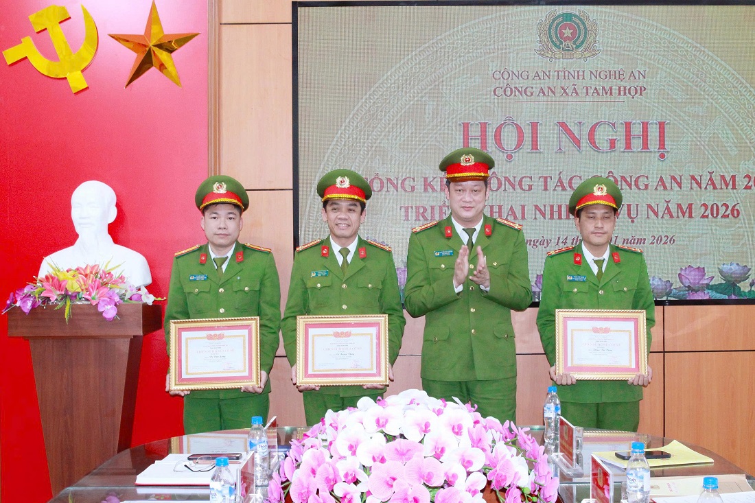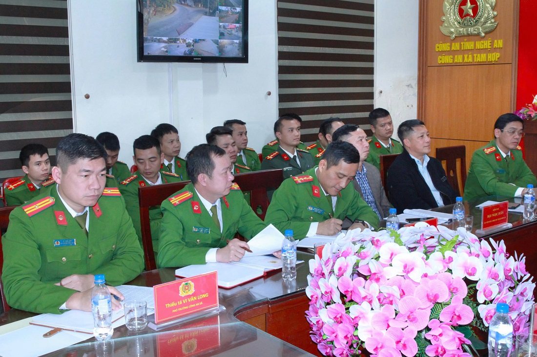 (Congan.nghean.gov.vn)-Ngày 14/01/2026, Công an xã Tam Hợp tổ chức Hội nghị triển khai chương trình công tác năm 2026. Dự và chỉ đạo Hội nghị có các đồng chí: Đại tá Nguyễn Đức Cường - Ủy viên Ban Thường vụ Đảng ủy, Phó Giám đốc Công an tỉnh; Vũ Quang Minh - Phó Bí thư Thường trực Đảng ủy; Đậu Ngọc Tuân, Phó Chủ tịch UBND xã.