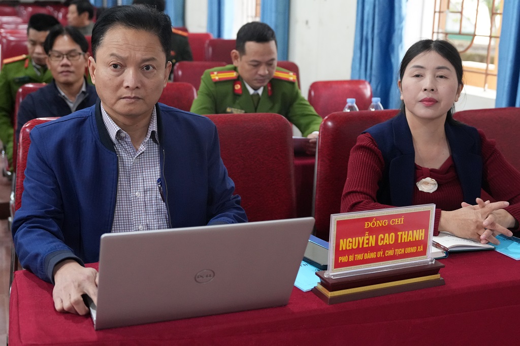 Tham dự Hội nghị, có các đồng chí: Lê Đình Thanh, Bí thư Đảng ủy, Chủ tịch HĐND xã; Nguyễn Cao Thanh, Phó Bí thư Đảng ủy, Chủ tịch UBND xã; đại diện phòng, ban, đơn vị trực thuộc UBND xã.