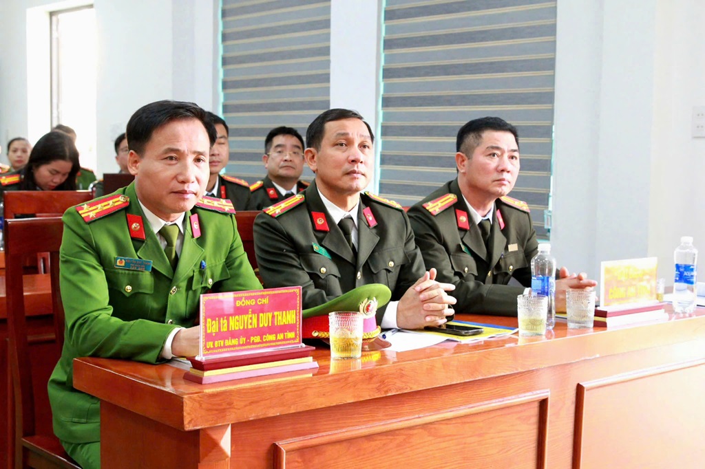 | Đồng chí Đại tá Nguyễn Duy Thanh, Ủy viên Ban Thường vụ Đảng ủy, Phó Giám đốc Công an tỉnh phát biểu chỉ đạo tại Hội nghị |