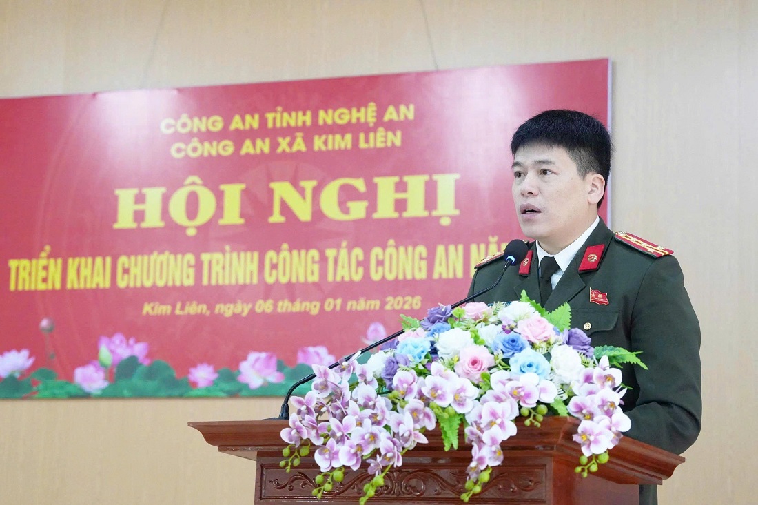 (Congan.nghean.gov.vn)-Sáng 06/01/2026, Công an xã Kim Liên tổ chức Hội nghị triển khai chương trình công tác năm 2026. Đồng chí Đại tá Trần Hồng Quang, Phó Bí thư Đảng ủy, Phó Giám đốc Công an tỉnh dự và chỉ đạo Hội nghị.