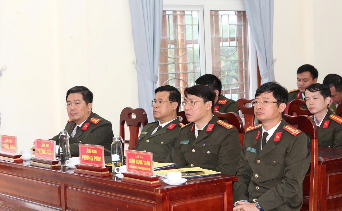 | Đồng chí Đại tá Trần Ngọc Tuấn, Ủy viên Ban Thường vụ Đảng ủy, Phó Giám đốc Công an tỉnh phát biểu chỉ đạo tại Hội nghị |