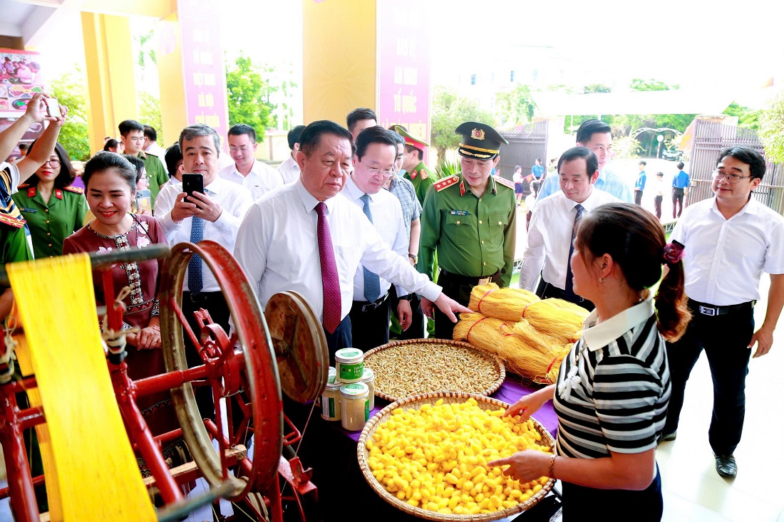 | Đồng chí Nguyễn Trọng Nghĩa, Ủy viên Bộ Chính trị, Bí thư Trung ương Đảng, Trưởng ban Tuyên giáo và Dân vận Trung ương và các đại biểu tham quan các gian hàng làng nghề truyền thống của xã Đô Lương |