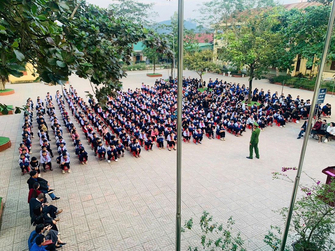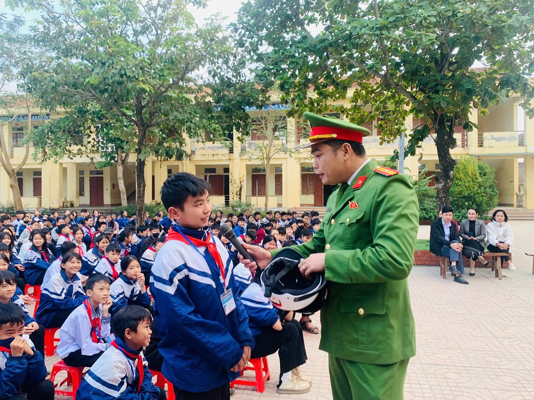 Buổi tuyên truyền thu hút hơn 500 cán bộ, giáo viên và học sinh tham gia. Không khí sôi nổi với nhiều phần hỏi- đáp tương tác giúp học sinh mạnh dạn chia sẻ, bày tỏ suy nghĩ. Đặc biệt, cán bộ Công an xã đã lồng ghép nhiều tình huống thực tế để các em thực hành kỹ năng như: cách tránh xa xung đột, nhận diện nguy cơ mất an toàn, kỹ năng bảo vệ bản thân trong trường học, ở nhà và ngoài cộng đồng. Cách truyền đạt trực quan giúp học sinh dễ hiểu, dễ nhớ và hình thành ý thức tự giác tuân thủ pháp luật.