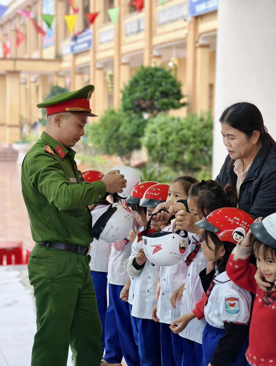 Dịp này, Công an xã Nam Đàn và Ban Giám hiệu nhà trường tổ chức ký cam kết chấp hành pháp luật về trật tự an toàn giao thông, phòng chống bạo lực học đường cho học sinh và giáo viên. Đồng thời, tặng 30 mũ bảo hiểm cho học sinh.