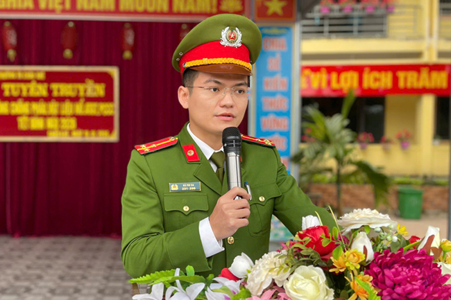 | Cán bộ Công an xã tuyên truyền phòng chống pháo, vật liệu nổ, an toàn giao thông và phòng cháy chữa cháy |