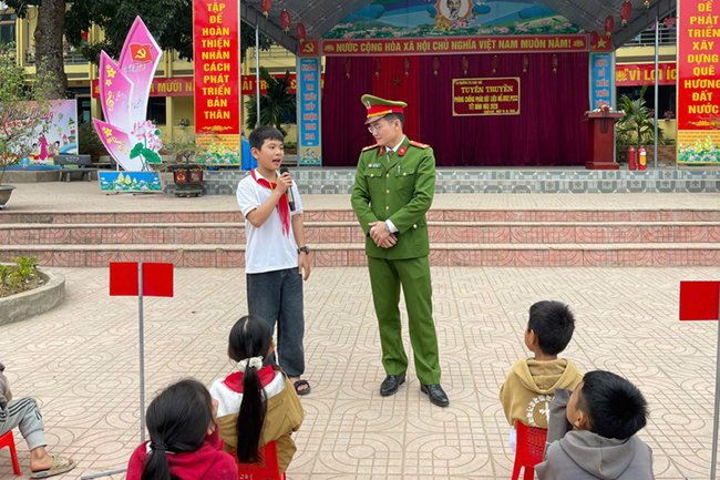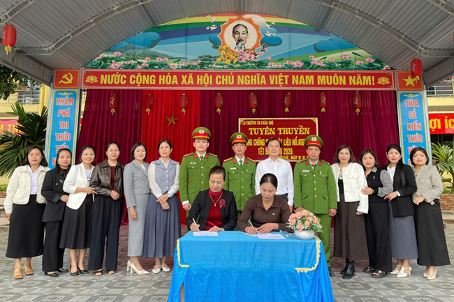 Công an xã cũng tổ chức cho giáo viên và học sinh ký cam kết thực hiện nghiêm quy định của pháp luật về phòng chống pháo, vật liệu nổ, an toàn giao thông và phòng cháy chữa cháy…
