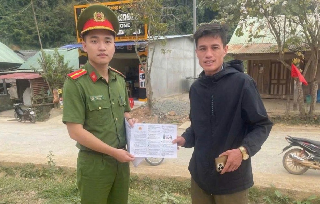 Công an xã trực tiếp đến thôn, bản, khu dân cư để phát tờ rơi tuyên truyền, phổ biến quy định của pháp luật, đồng thời cung cấp thông tin về phương thức, thủ đoạn hoạt động của đối tượng phạm tội về ma túy và mua bán người. Nội dung tờ rơi được thiết kế ngắn gọn, dễ hiểu, phù hợp với người dân địa phương, đặc biệt là đồng bào dân tộc thiểu số.