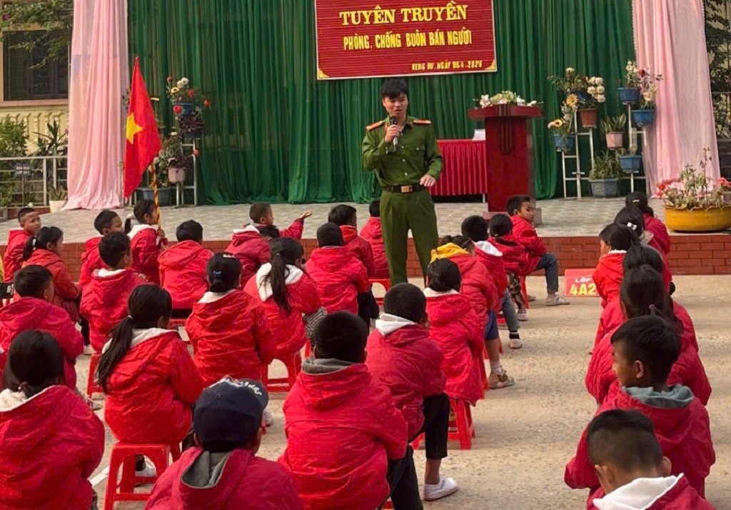 Tại buổi tuyên truyền, Công an xã cung cấp cho cán bộ, giáo viên và học sinh nhà trường những kiến thức cơ bản về tình hình, phương thức, thủ đoạn hoạt động của tội phạm mua bán người hiện nay. Đặc biệt, tập trung làm rõ chiêu trò lừa đảo phổ biến như dụ dỗ đi làm “việc nhẹ lương cao”, môi giới việc làm trái phép, kết bạn qua mạng xã hội để lừa gạt hoặc lợi dụng hoàn cảnh khó khăn, thiếu hiểu biết của người dân vùng cao để thực hiện hành vi phạm tội.