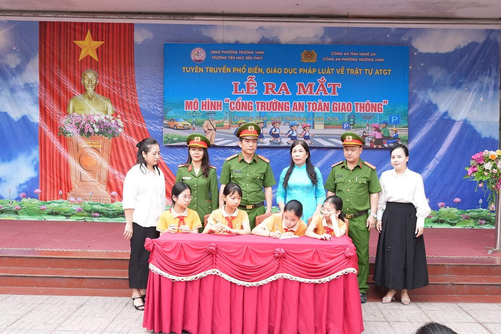 (Congan.nghean.gov.vn)-Công an phường Trường Vinh phối hợp với Trường Tiểu học Bến Thủy vừa tổ chức Lễ ra mắt mô hình “Cổng trường an toàn giao thông”.