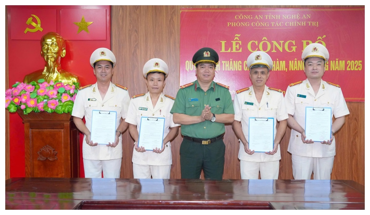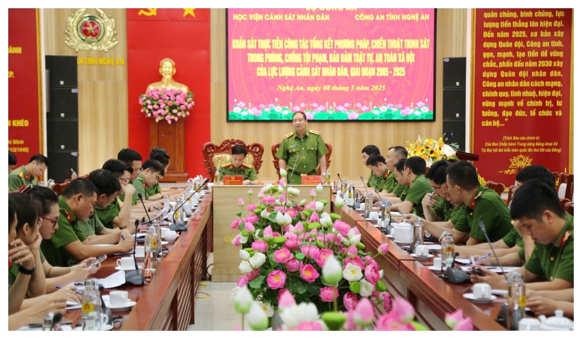 10:39 | 19/12/2025Công an tỉnh Nghệ An chúc mừng các đơn vị quân đội nhân Ngày truyền thống Quân đội nhân dân Việt NamNhân dịp kỷ niệm 81 năm Ngày thành lập Quân đội nhân dân Việt Nam (22/12/1944 - 22/12/2025) và 36 năm Ngày hội quốc phòng toàn dân (22/12/1989 - 22/12/2025), ngày 19/12/2025, đoàn công tác Công an tỉnh Nghệ An do đồng chí Thiếu tướng Đinh Việt Dũng - Ủy viên Ban Thường vụ Tỉnh ủy, Bí thư Đảng ủy, Giám đốc Công an tỉnh làm Trưởng đoàn đã đến tặng hoa, chúc mừng Bộ Tư lệnh Quân khu 4, Bộ Chỉ huy Quân sự tỉnh. Cùng đi có các đồng chí Phó Giám đốc: Đại tá Nguyễn Duy Thanh, Đại tá Nguyễn Đức Cường, Thượng tá Phạm Thành Long và lãnh đạo một số phòng thuộc Công an tỉnh.. -