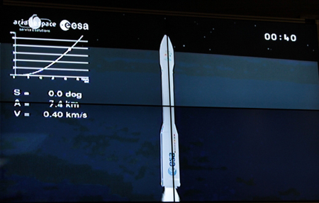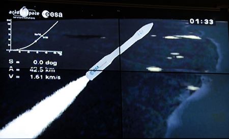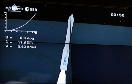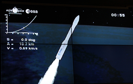Đúng 9 giờ 6 phút 31 giây, tên lửa đẩy Vega được khởi động. Ảnh: VGP/Xuân Tuyến |