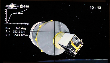 Sau 10 phút 13 giây, 2 tầng nhiên liệu đã được tách, vỏ khoang chứa vệ tinh đã được mở. tên lửa ở độ cao 283km, di chuyển với tốc độ gần 8 km/giây |