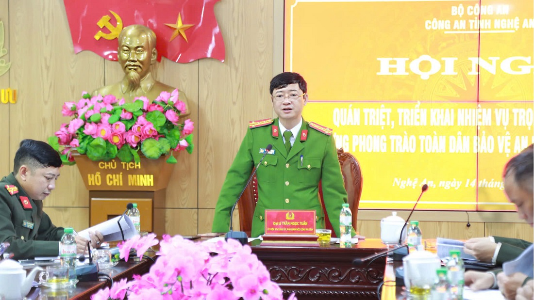 (Congan.nghean.gov.vn)-Sáng 14/3/2025, Công an tỉnh Nghệ An tổ chức Hội nghị quán triệt, triển khai nhiệm vụ trọng tâm công tác xây dựng phong trào toàn dân bảo vệ an ninh Tổ quốc (ANTQ) năm 2025. Đồng chí Đại tá Trần Ngọc Tuấn, Phó Giám đốc Công an tỉnh chủ trì Hội nghị. Tham dự Hội nghị có đại diện lãnh đạo các phòng chức năng Công an tỉnh.