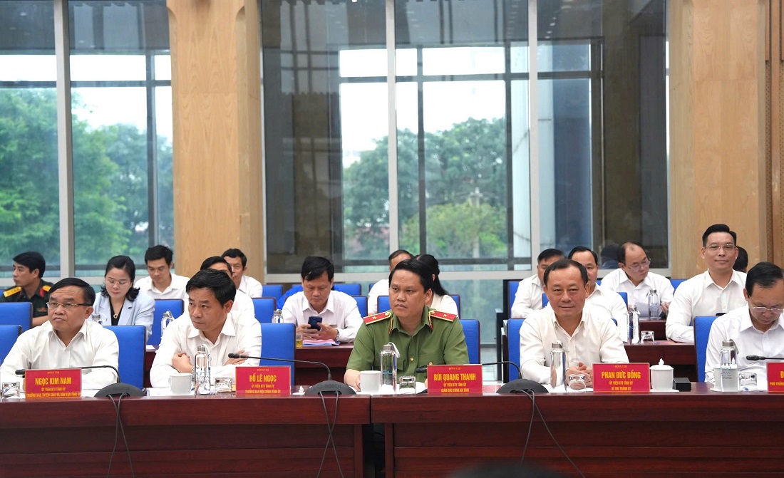 | Đồng chí Thiếu tướng Bùi Quang Thanh, Ủy viên Ban Thường vụ Tỉnh ủy, Bí thư Đảng ủy, Giám đốc Công an tỉnh tham dự buổi làm việc của đồng chí Tổng Bí thư Tô Lâm với Ban Thường vụ Tỉnh ủy Nghệ An |
