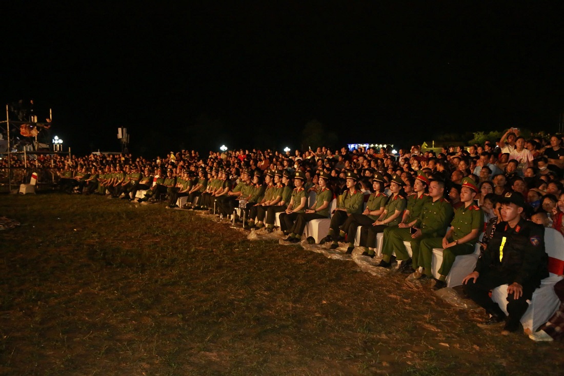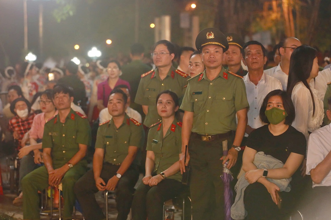 | Các lực lượng phối hợp bảo đảm an ninh trật tự tại Chương trình khai mạc Lễ hội Làng Sen năm 2025 |
