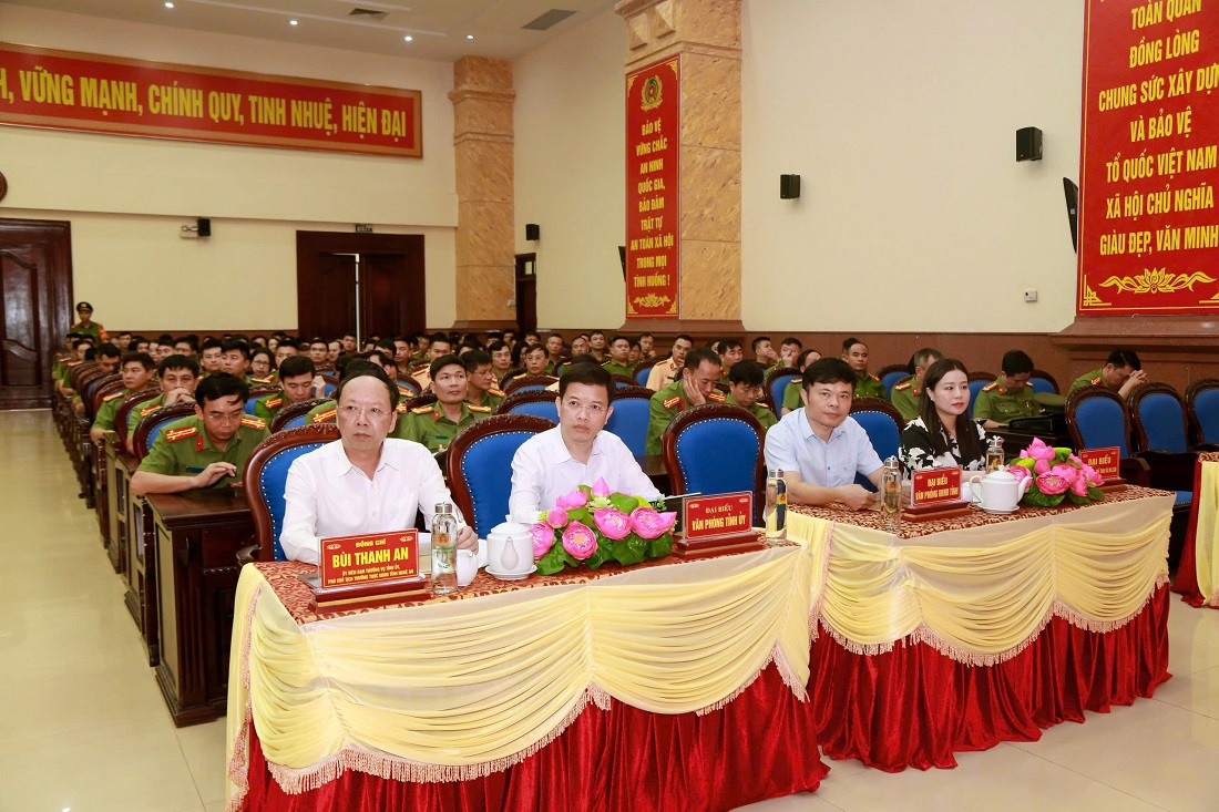 Đại biểu Công an tỉnh, đồng chí Thiếu tướng Bùi Quang Thanh, Ủy viên Ban Thường vụ Tỉnh ủy, Bí thư Đảng ủy, Giám đốc Công an tỉnh chủ trì Hội nghị. Tham dự Hội nghị có các đồng chí trong Ban Thường vụ Đảng ủy, Lãnh đạo Công an tỉnh; trưởng các phòng, đoàn thể Công an tỉnh và các tập thể, cá nhân khen được biểu dương, khen thưởng.