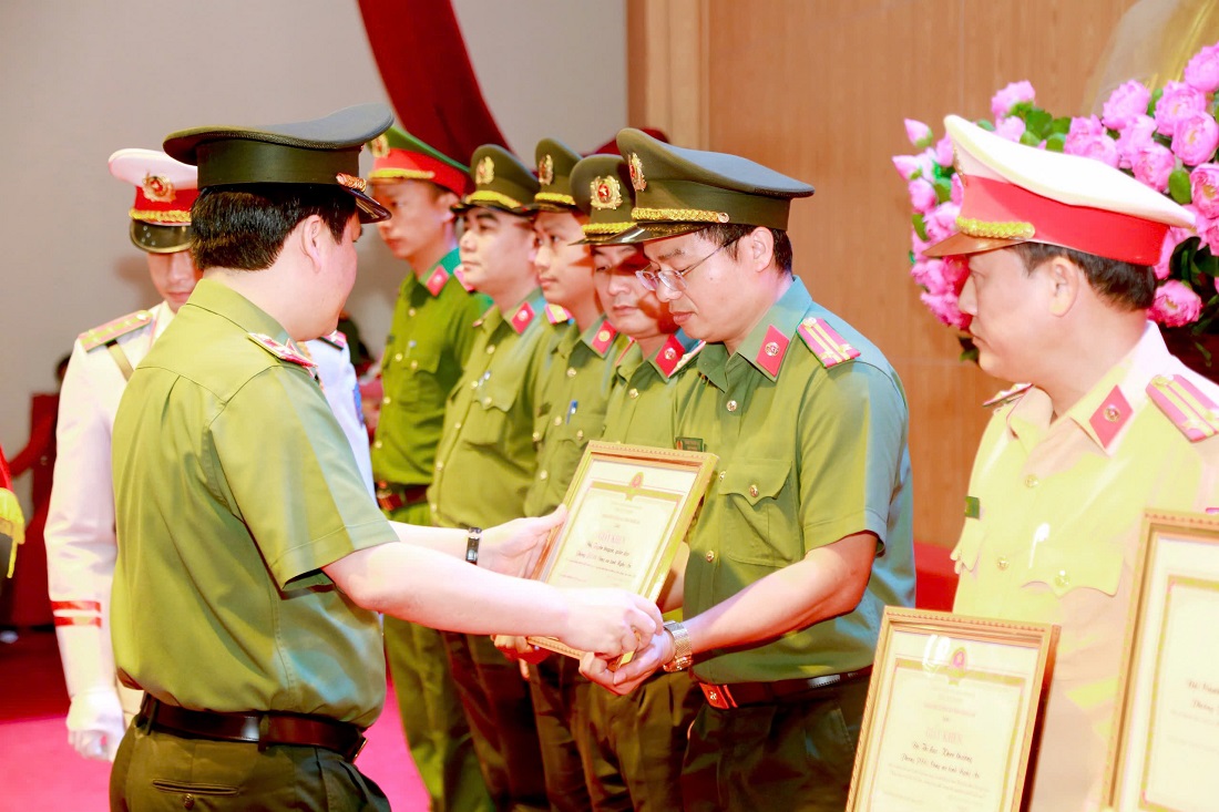 (Congan.nghean.gov.vn)-Sáng 23/5/2025, Công an tỉnh Nghệ An tổ chức Hội nghị biểu dương, khen thưởng các tập thể, cá nhân có thành tích xuất sắc trong công tác phòng, chống tội phạm, bảo đảm an ninh, trật tự (ANTT) và phục vụ các hoạt động, sự kiện lớn trên địa bàn trong tháng 5/2025.