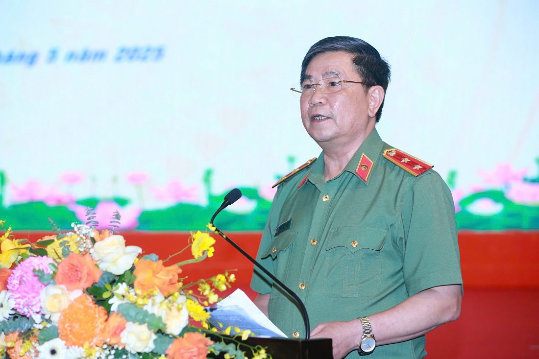 | Đồng chí Đại tướng Lương Tam Quang, Ủy viên Bộ Chính trị, Bí thư Đảng ủy Công an Trung ương, Bộ trưởng Bộ Công an phát biểu kết luận Hội thảo |