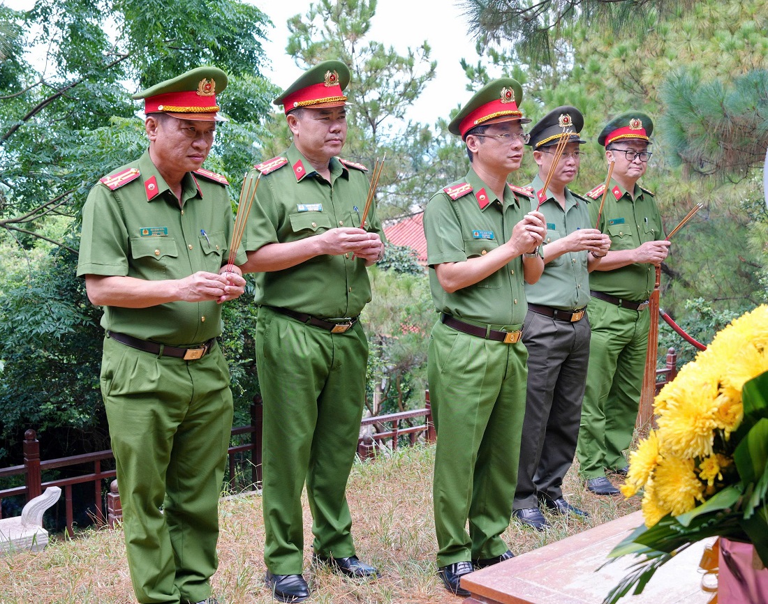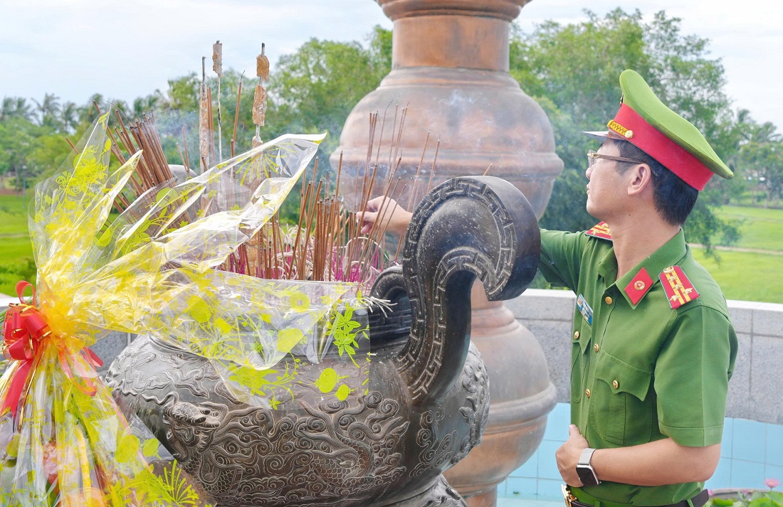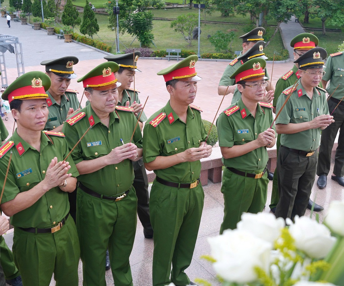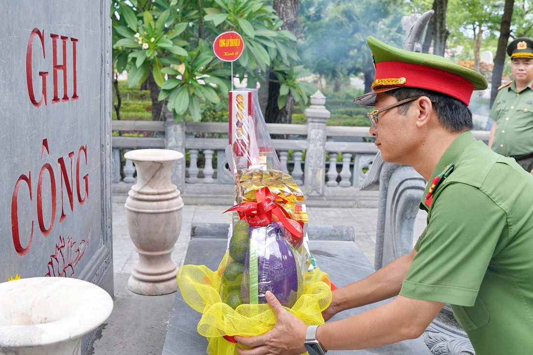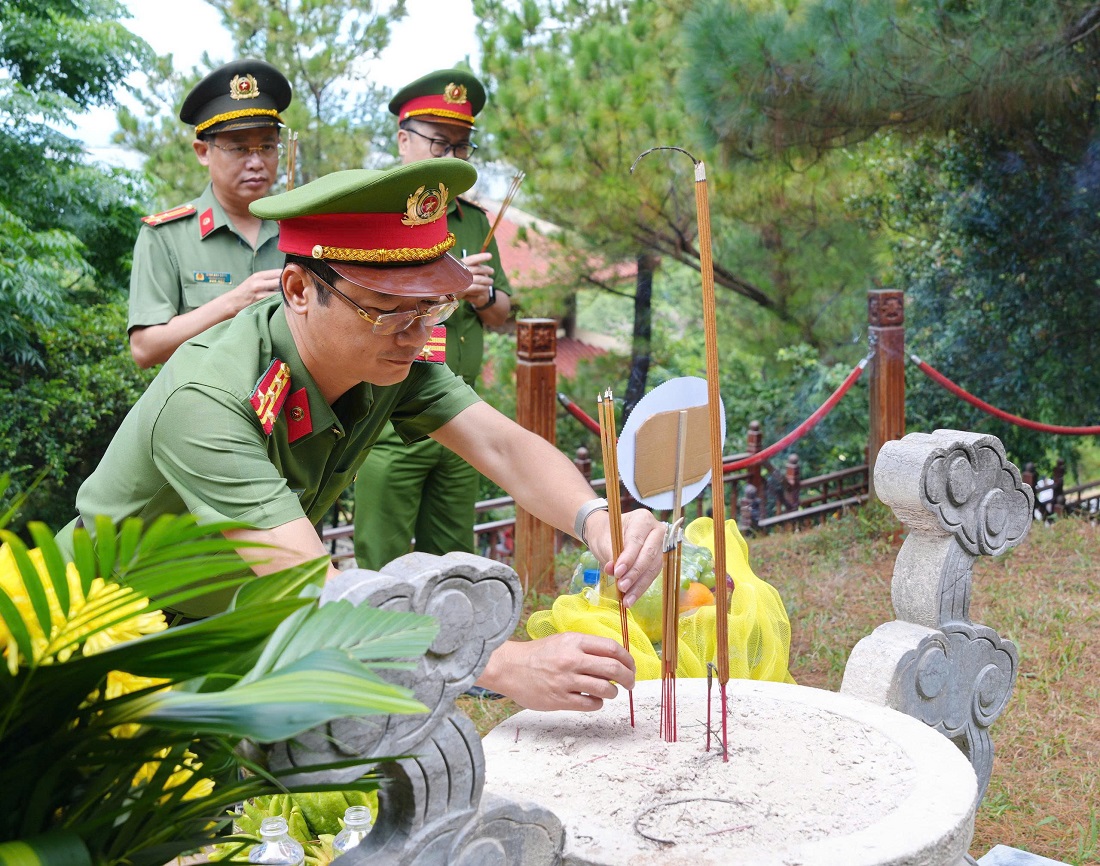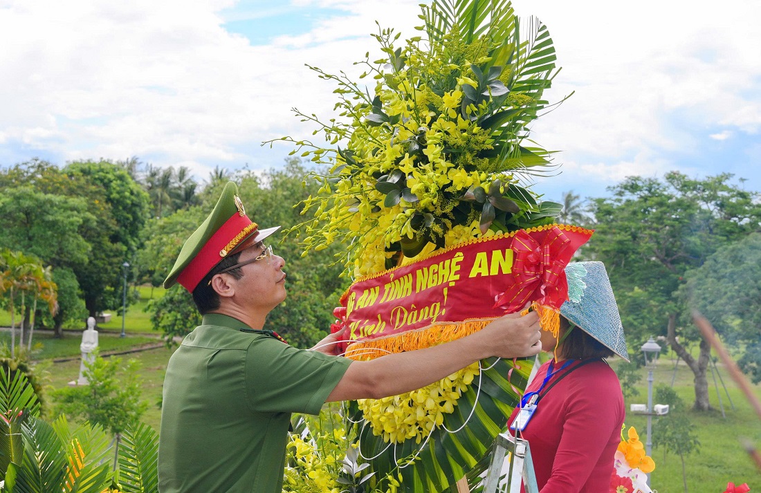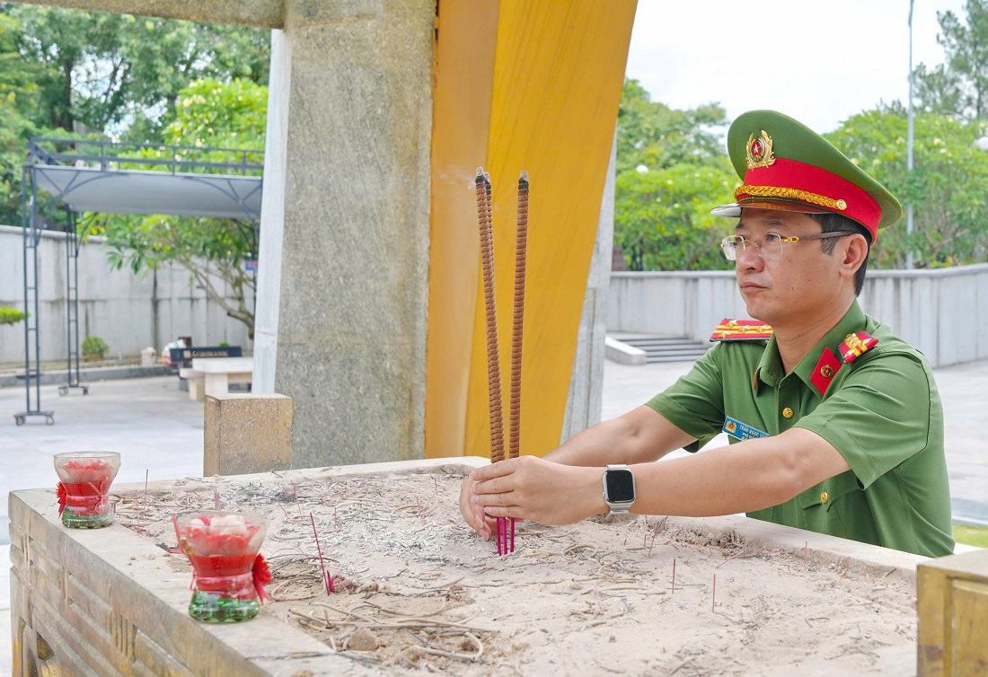 | Đồng chí Đại tá Trần Ngọc Tuấn, Ủy viên Ban Thường vụ Đảng ủy, Phó Giám đốc Công an tỉnh cùng Đoàn đại biểu dâng hương tại Nghĩa trang Liệt sĩ Quốc gia Trường Sơn |