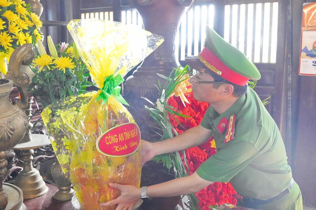 Tại Vũng Chùa - Đảo Yến, nơi yên nghỉ của Đại tướng Võ Nguyên Giáp - người học trò xuất sắc của Chủ tịch Hồ Chí Minh, người Anh cả của Quân đội nhân dân Việt Nam, Đoàn đại biểu đã thành kính dâng hoa, dâng hương, bày tỏ lòng biết ơn sâu sắc trước công lao to lớn của Đại tướng đối với sự nghiệp cách mạng vẻ vang của dân tộc. Đồng thời nguyện hứa sẽ tiếp tục phát huy truyền thống anh hùng cách mạng, không ngừng rèn luyện bản lĩnh chính trị, phẩm chất đạo đức và năng lực công tác; sẵn sàng nhận và hoàn thành xuất sắc mọi nhiệm vụ được giao, góp phần xây dựng lực lượng Công an Nghệ An ngày càng trong sạch, vững mạnh, vì sự nghiệp bảo vệ an ninh Tổ quốc, vì cuộc sống bình yên, hạnh phúc của Nhân dân.