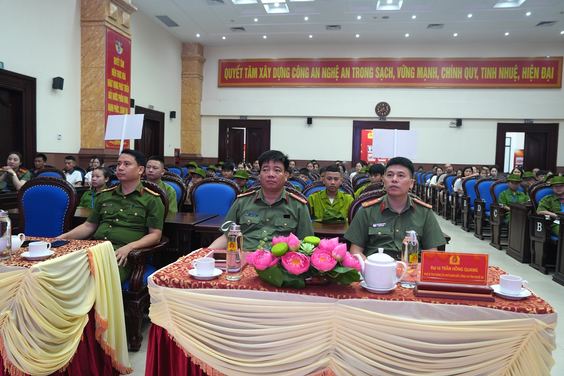 (Congan.nghean.gov.vn)-Sáng 07/7/2025, Công an tỉnh Nghệ An tổ chức Lễ khai giảng và xuất quân chương trình “Học làm chiến sĩ Công an” năm 2025. Tham dự buổi lễ có các đồng chí: Đại tá Trần Hồng Quang - Phó Bí thư Đảng ủy, Phó Giám đốc Công an tỉnh; Nguyễn Ngọc Châu, Giám đốc Trung tâm Hỗ trợ và phát triển thanh niên tỉnh Nghệ An cùng đại diện lãnh đạo các đơn vị, các đoàn thể và 56 học viên tham gia khoá học.