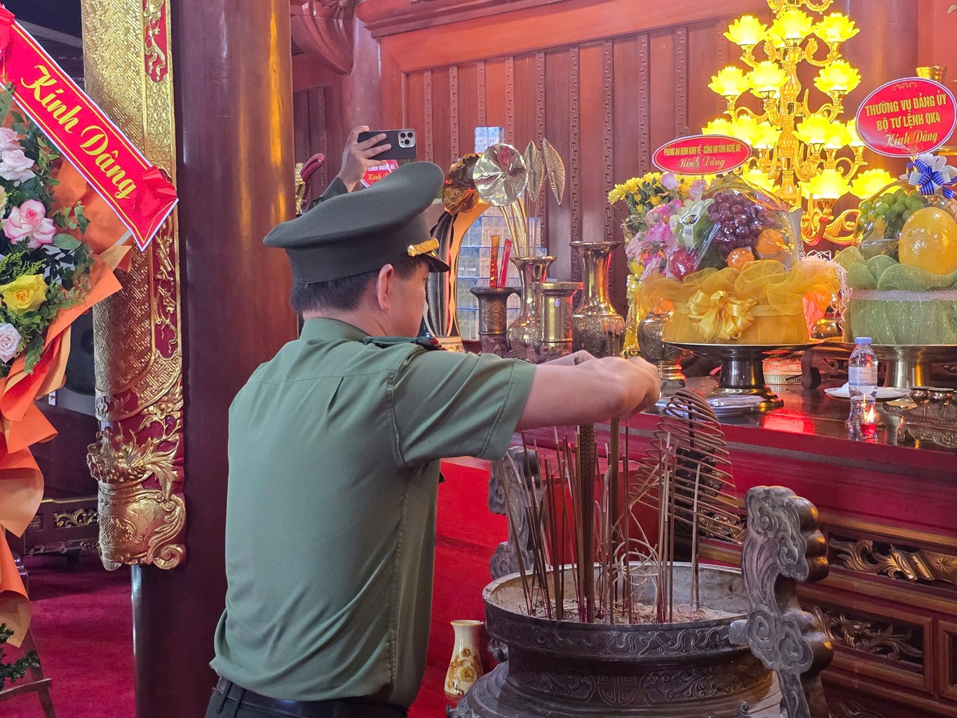 | Đồng chí Thượng tá Thúc Văn Đức, Phó Bí thư Chi bộ, Phó Trưởng Phòng An ninh kinh tế và đoàn dâng hương, dâng hoa tại Khu du tích lịch sử Truông Bồn |