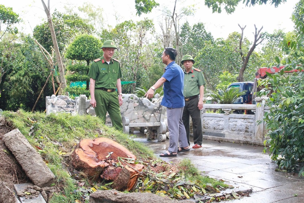| Lãnh đạo Công an tỉnh kiểm tra, chỉ đạo đẩy nhanh tiến độ khắc phục hậu quả mưa bão tại Khu Di tích Kim Liên với quyết tâm để Khu di tích kịp đón các đoàn và du khách về nguồn, tham quan trong dịp đại Lễ lơn của đất nước |