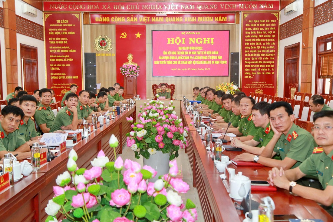 (Congan.nghean.gov.vn)-Chiều 05/9/2025, tại Hà Nội, Bộ Công an tổ chức Hội nghị giao ban Bộ tháng 8/2025; tổng kết công tác bảo đảm ANTT kỷ niệm 80 năm Cách mạng tháng Tám, Quốc khánh 2/9; các hoạt động kỷ niệm 80 năm Ngày truyền thống CAND và 20 năm Ngày hội toàn dân bảo vệ ANTQ. Đồng chí Đại tướng Lương Tam Quang, Ủy viên Bộ Chính trị, Bí thư Đảng ủy Công an Trung ương, Bộ trưởng Bộ Công an dự và phát biểu chỉ đạo Hội nghị.