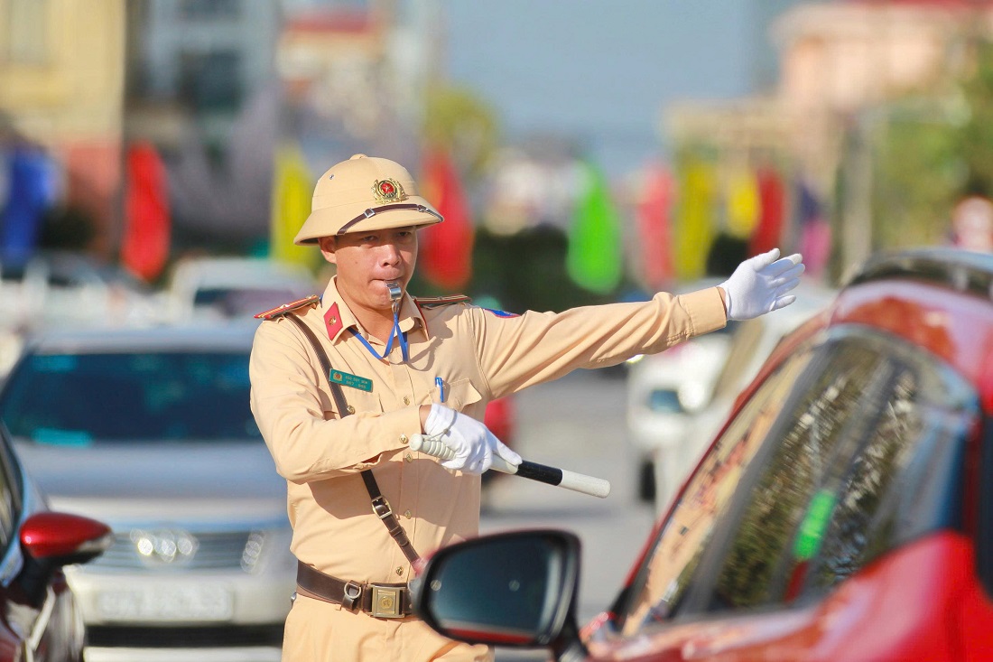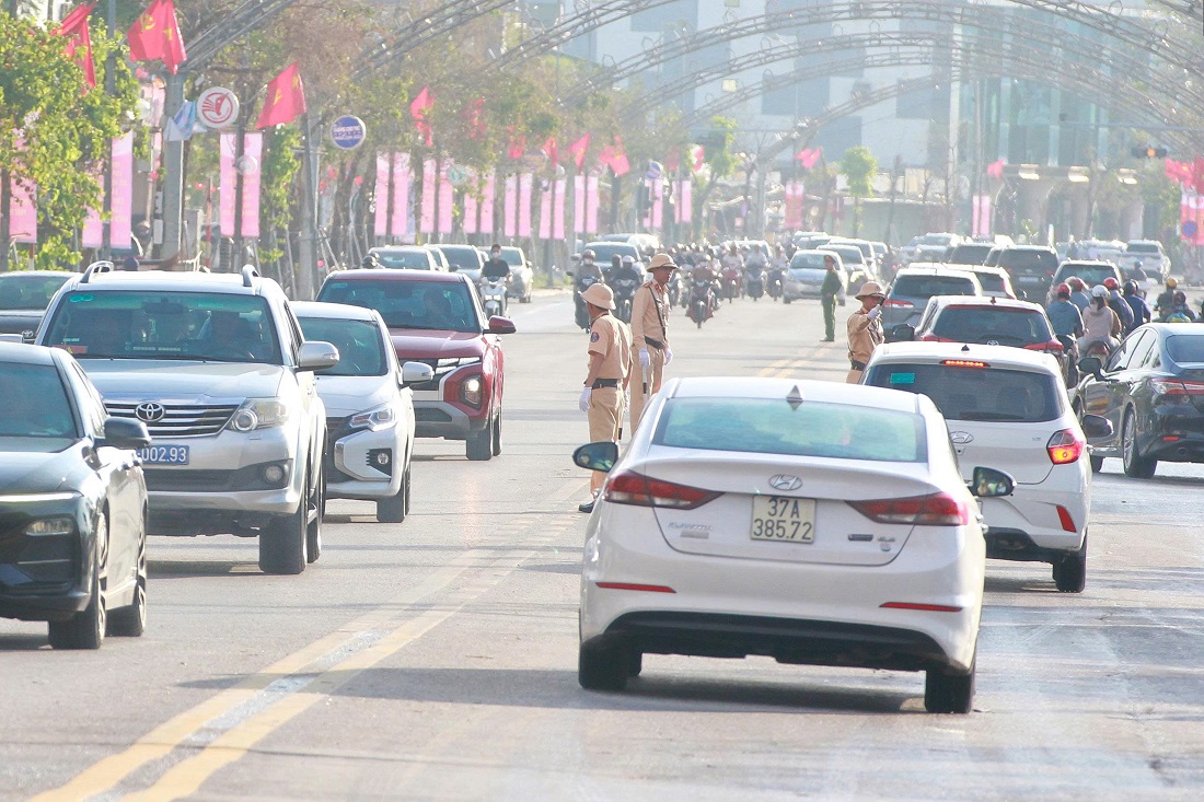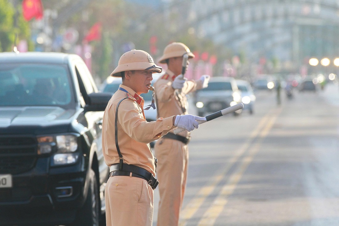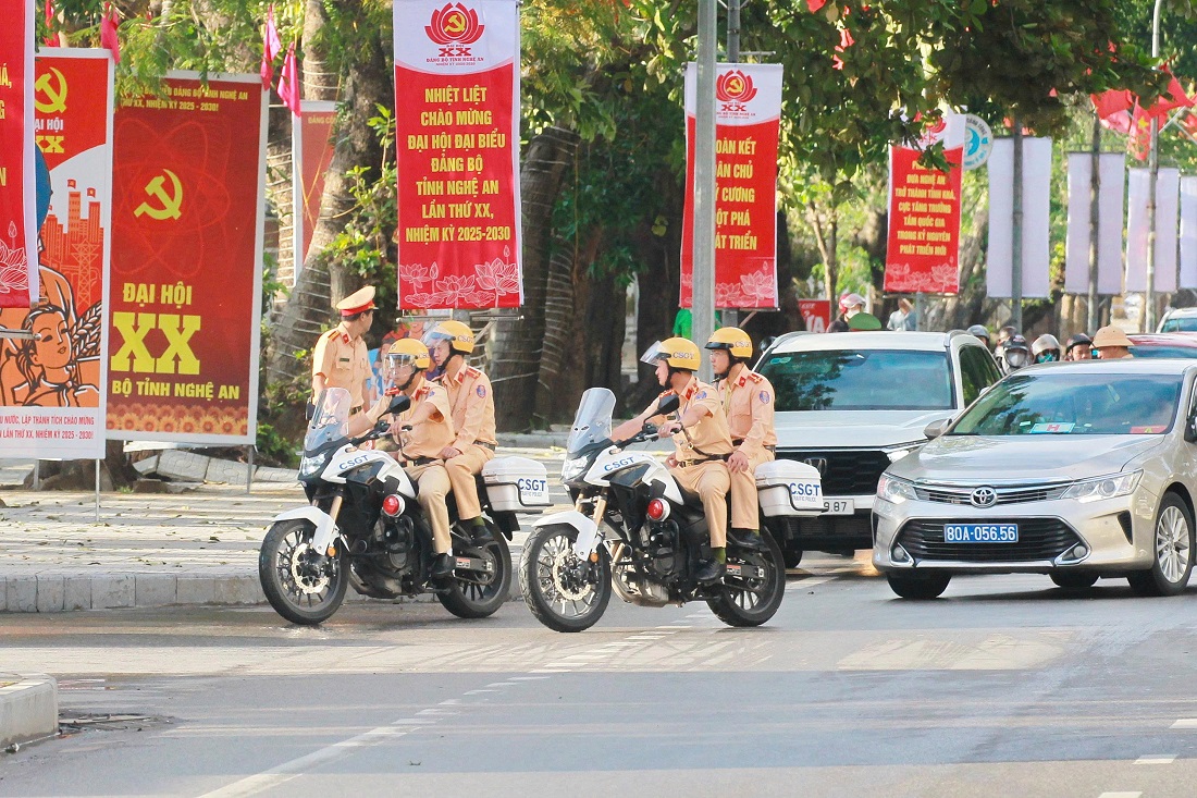 | Ngay từ sớm, lực lượng Cảnh sát giao thông đã có mặt tại các tuyến đường và trước địa điểm diễn ra Đại hội để phân luồng, bảo đảm trật tự an toàn giao thông |