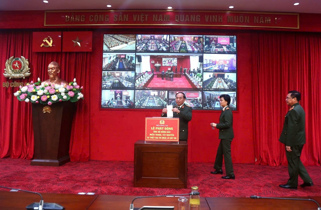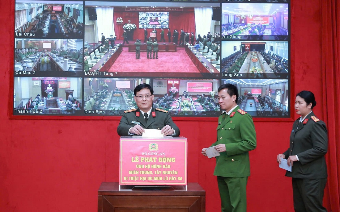 (Congan.nghean.gov.vn)-Sáng 27/11/2025, tại Hà Nội, Bộ Công an tổ chức Lễ phát động ủng hộ đồng bào miền Trung, Tây Nguyên bị thiệt hại do mưa lũ gây ra theo hình thức trực tiếp và trực tuyến tới Công an các tỉnh, thành phố trên cả nước. Thượng tướng Trần Quốc Tỏ, Ủy viên Trung ương Đảng, Phó Bí thư Đảng ủy Công an Trung ương, Thứ trưởng Bộ Công an chủ trì buổi lễ.