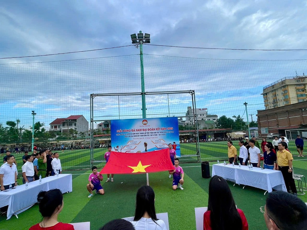 | Các đội tham gia Giải bóng đá “Đại đoàn kết” đã cống hiến nhiều pha bóng hay, đẹp mắt, mang đến cho khán giả những phút giây cổ vũ sôi nổi |