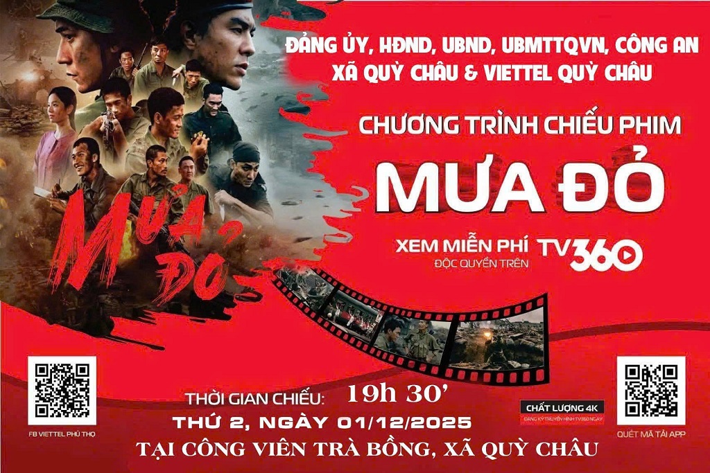 (Congan.nghean.gov.vn)-Vừa qua, tại công viên Trà Bồng, xã Quỳ Châu, Công an xã chủ trì, phối hợp với VIETTEL Quỳ Châu chiếu bộ phim “Mưa đỏ”. Buổi chiếu có sự tham dự của Lãnh đạo xã cùng các ban, đoàn thể, cán bộ chiến sĩ và Nhân dân xã Qùy Châu, với hơn 1.500 người xem.