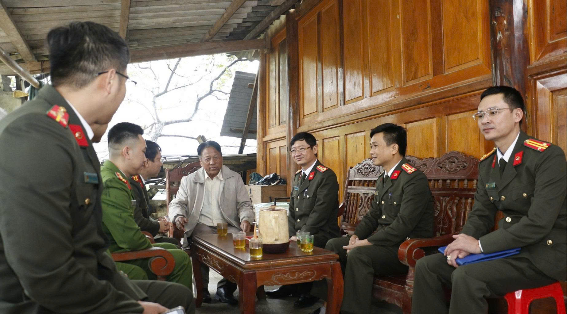 | Đồng chí Đại tá Trần Ngọc Tuấn, Phó Giám đốc Công an tỉnh cùng Đoàn công tác thăm, tặng quà, chúc Tết hai người có uy tín trong đồng bào Mông tại xã Mường Lống |