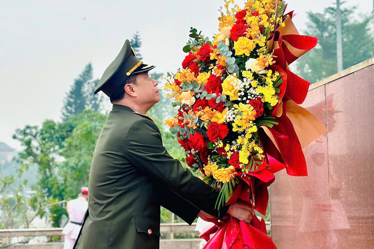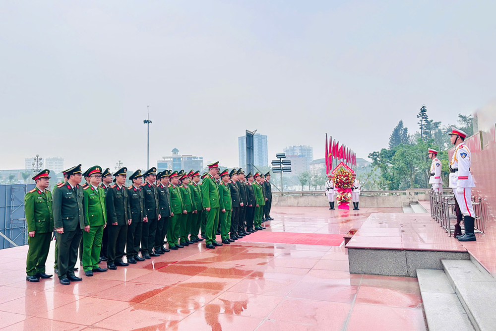 | Trước khi khai mạc buổi lễ, Đoàn đại biểu Công an tỉnh dâng hoa, dâng hương tưởng niệm Chủ tịch Hồ Chí Minh tại Quảng trường mang tên Người |
